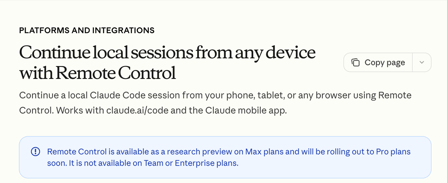 2026년 2월에 나온 기능이다. 로컬에서 돌아가는 Claude Code 세션을 claude.ai/code, iOS 앱, Android 앱 어디서든 이어서 쓸 수 있게 해준다.